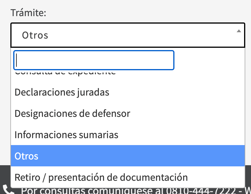 En esa sección del formulario web podrán indicarse en forma precisa todos los datos sobre la gestión que se desea realizar: la identificación de la causa a la que se refiere, las constancias que se necesitan consultar o retirar, etc.