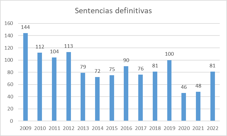 Estadísticas | Sentencias Cantidad de sentencias dictadas por año Definitivas, interlocutorias y regulaciones de honorarios Comparte esto: Haz clic para enviar un enlace por correo electrónico a un amigo (Se abre en una ventana nueva) Correo electrónico Haz clic para imprimir (Se abre en una ventana nueva) Imprimir Tweet Haz clic para compartir en WhatsApp (Se abre en una ventana nueva) WhatsApp Me gusta Cargando...